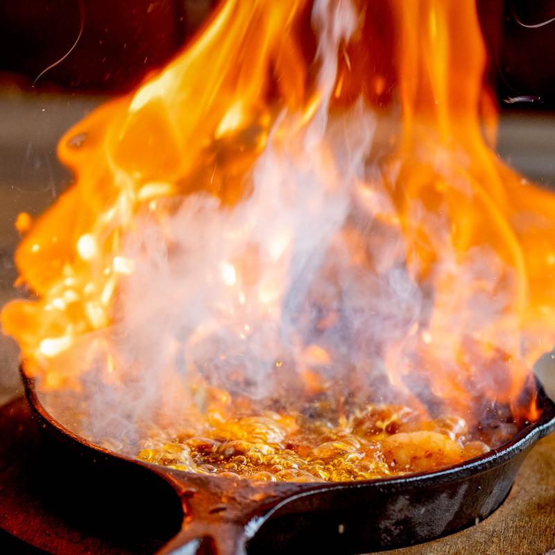 Grilled shrimp, mushrooms, onions & tomatoes, served with rice, beans & flour tortillas