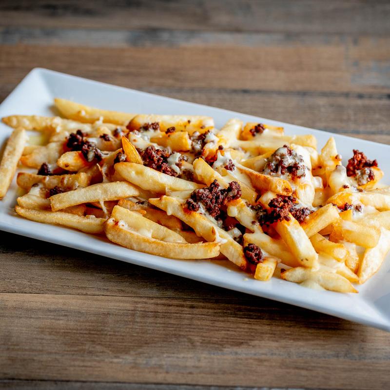 Soft or fried flour tortilla filled with beef or chicken. Topped with cheese dip, lettuce, tomatoes, sour cream & guacamole. Served with rice and fried beans